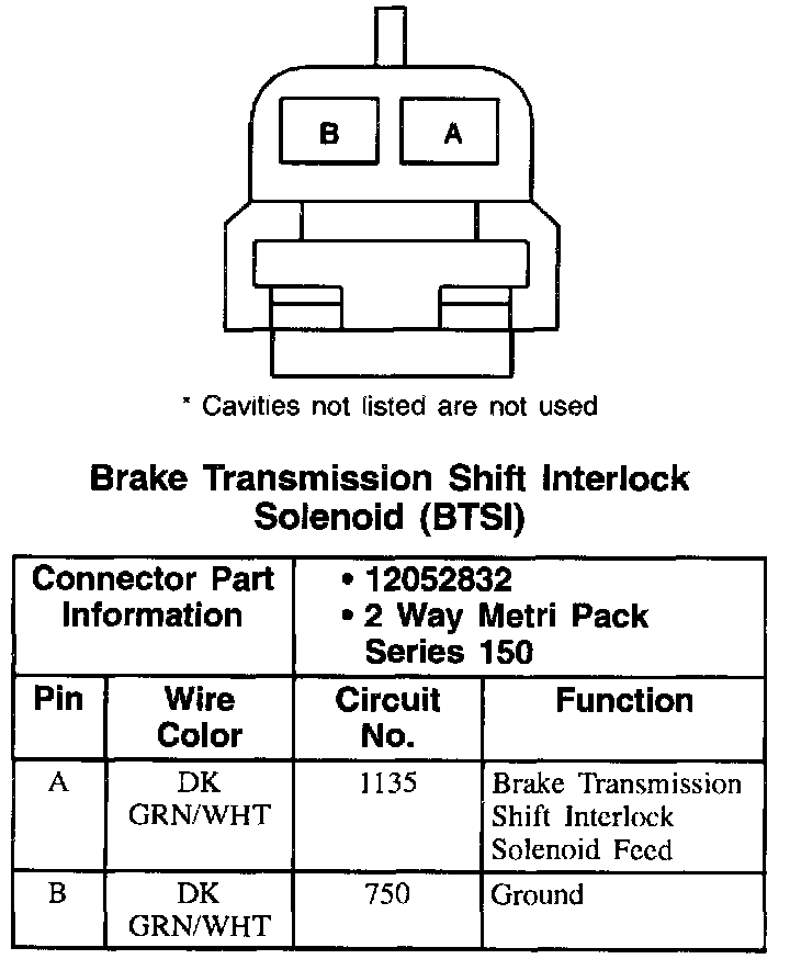Brake Transission Shift Interlock Solenoid (BTSI):
