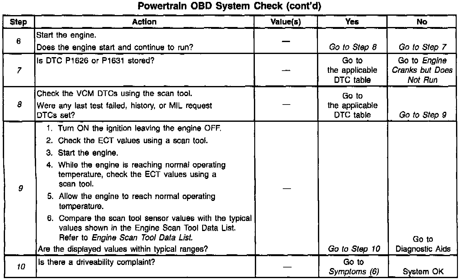 10. A driveability complaint may not be present if you were sent to this system check from another section in the service information (i.e. the System Check for: EBCM, ATCCM).