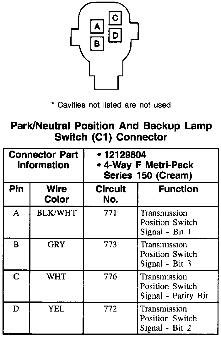 Park/Neutral Position And Backup Lamp Switch Connector: C1: