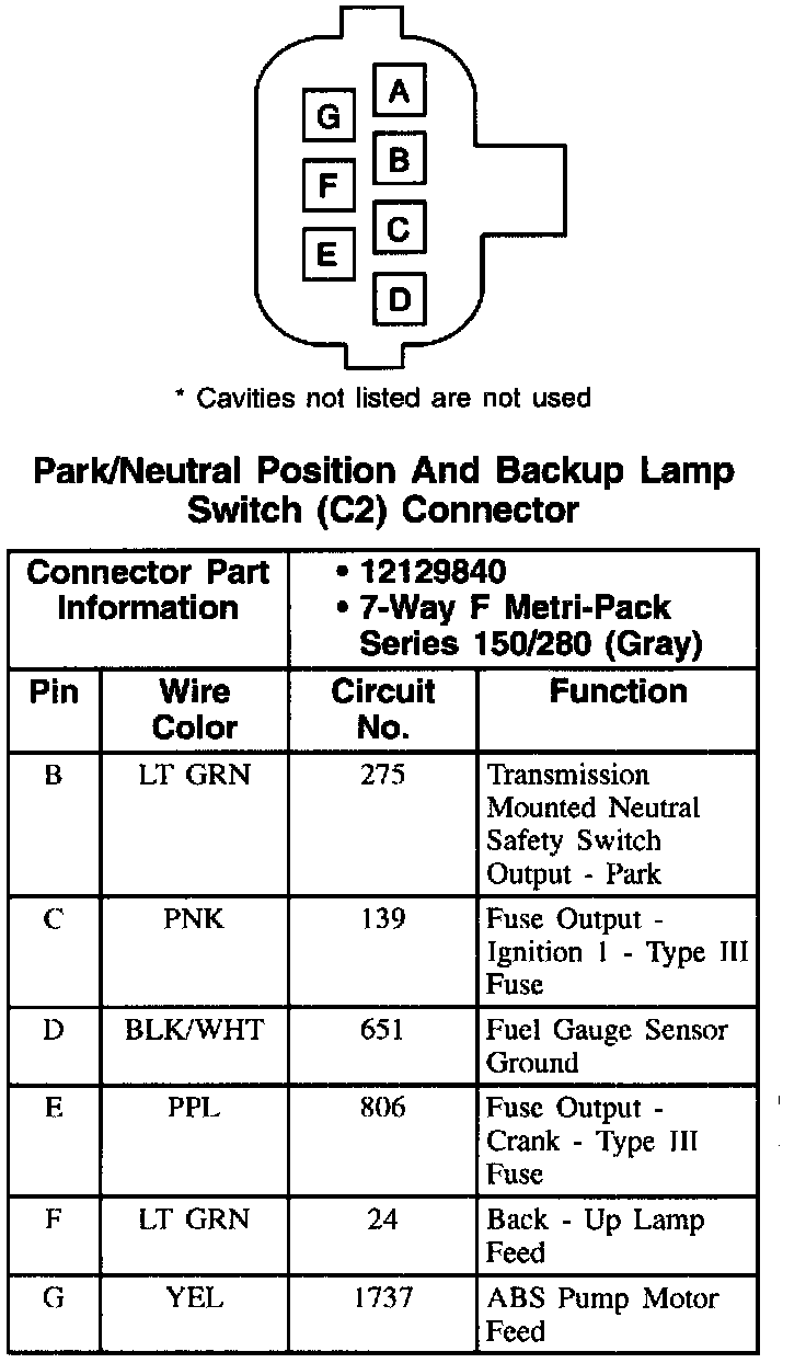 Park/Neutral Position And Backup Lamp Switch Connector: C2: