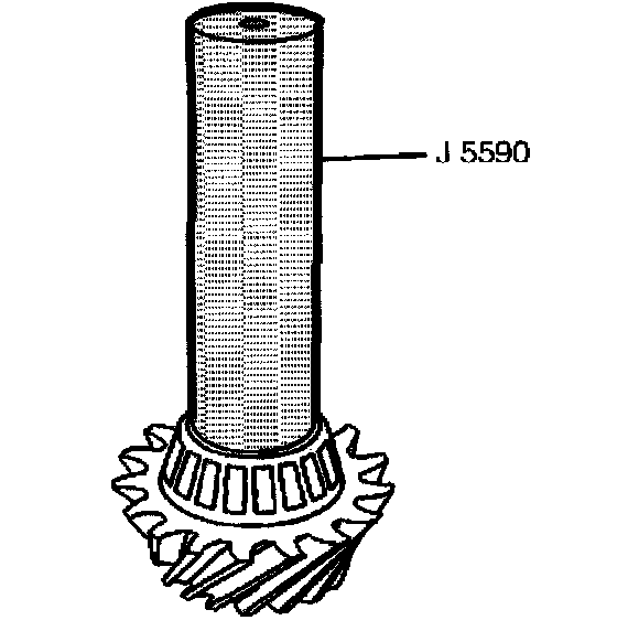 6. Install the outer pinion bearing onto the pinion using the J5590. When you drive the bearing onto the pinion, hold the pinion forward from inside the case.