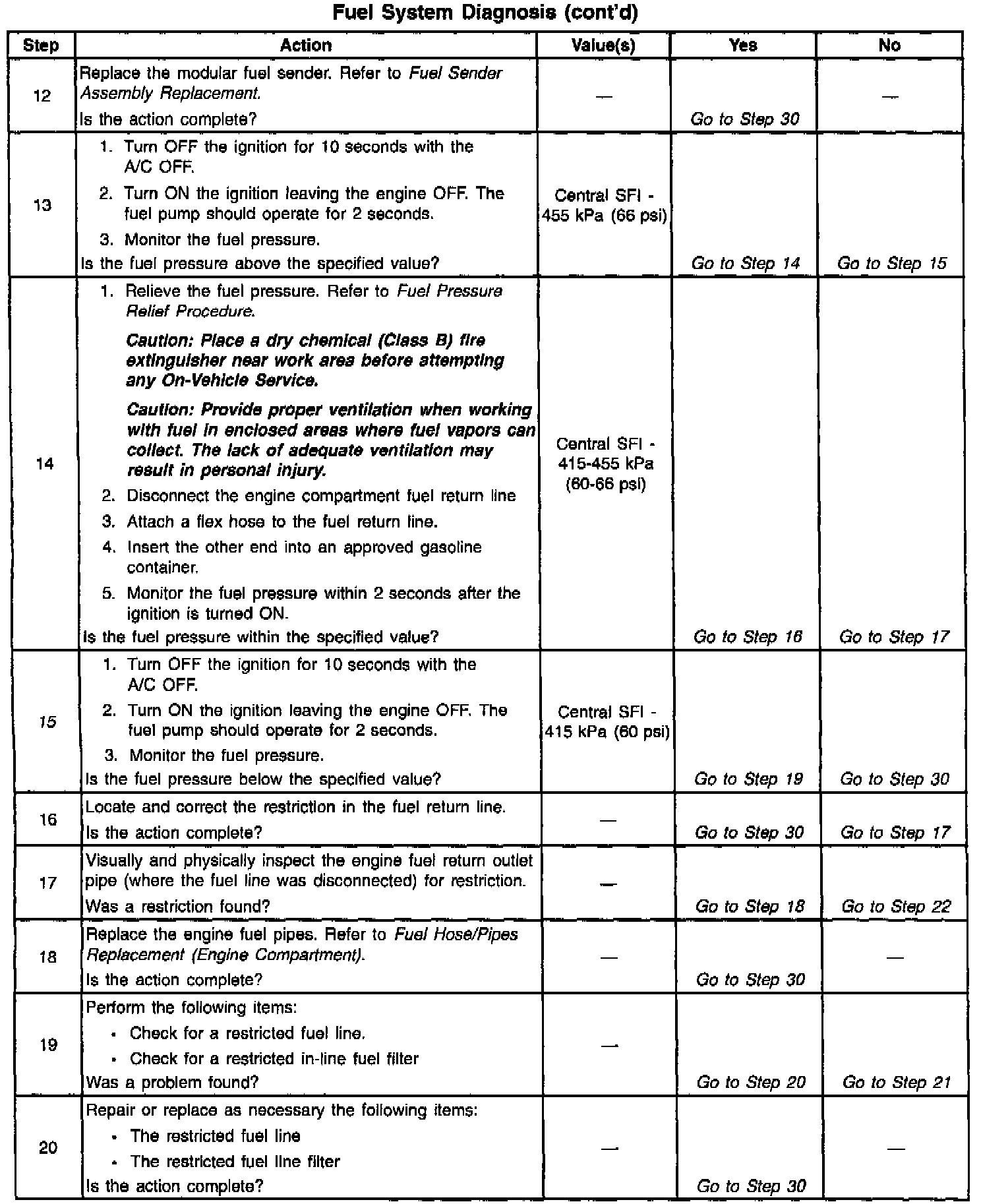 15. If the fuel pressure is less than 415 kPa (60 psi), it falls into the following 3 areas: