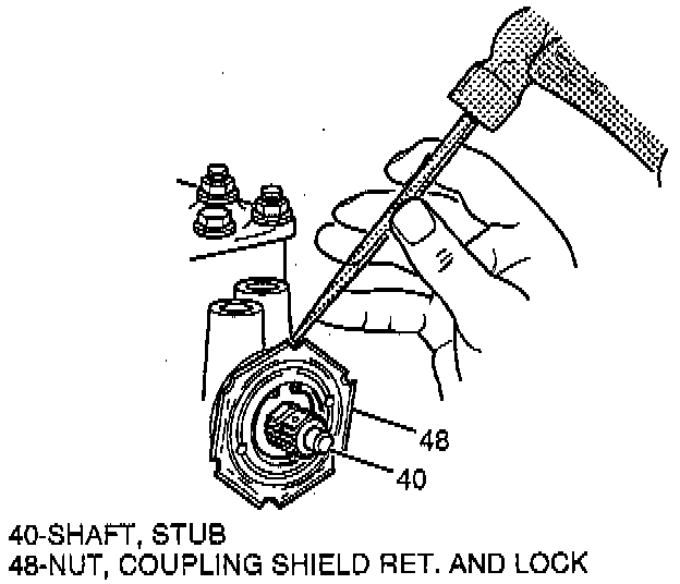 5. Install coupling shield ret. and lock nut (48), and using a drift in a notch, tighten securely.