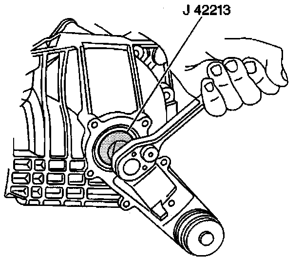 5.2. Turn the left sleeve in toward the differential case using the J42213 until backlash is felt between the ring and pinion gear.