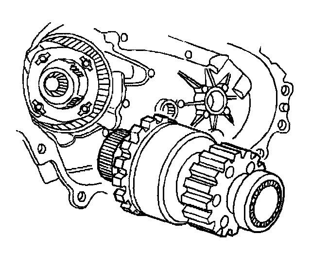 25. Install the sun gear shaft assembly into the planet carrier assembly gears. Align the viscous clutch teeth with the ring gear spline.