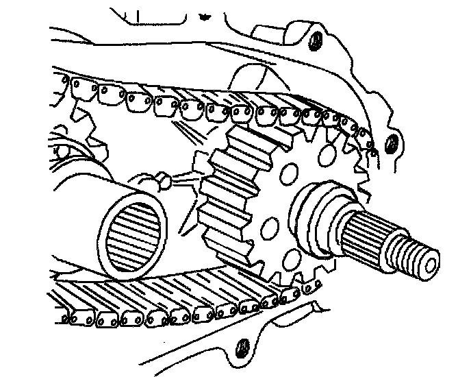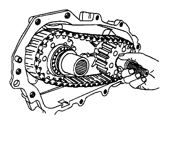29. Install the drive chain onto the drive sprocket and install the front output shaft into the output shaft rear bearing.