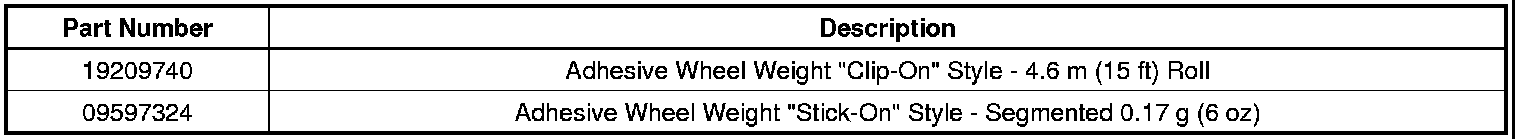 The wheels must be cleaned prior to installation of any adhesive weights. Failure to properly clean the wheels may result in poor adhesion of the weights.