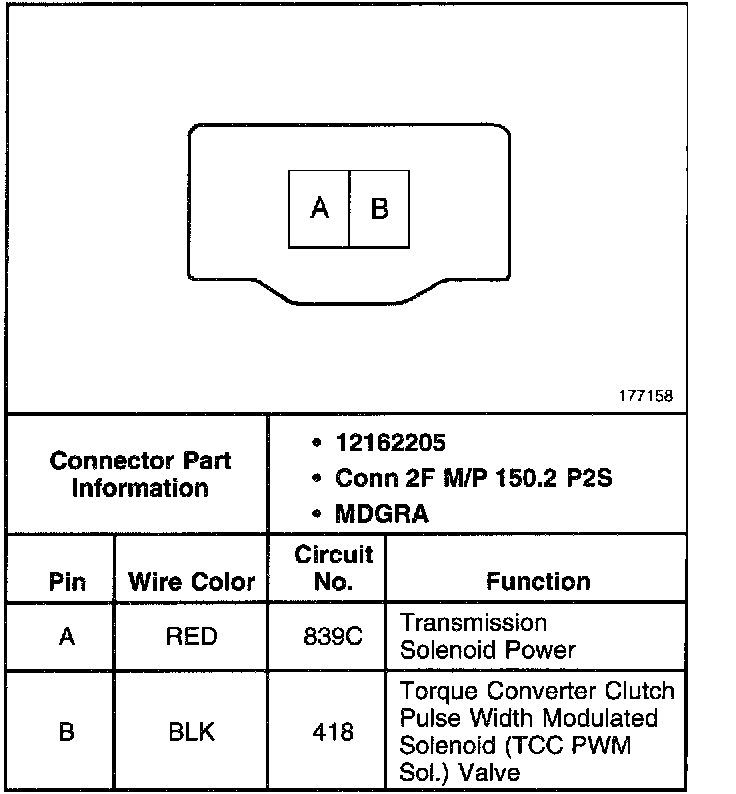 TCC PWM Solenoid Valve Connector, Wiring Harness Side
