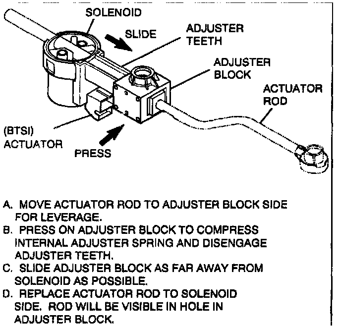 - Actuator (61) must release gearshift lever when pressure is applied to brake pedal. (Solenoid is de-energized)