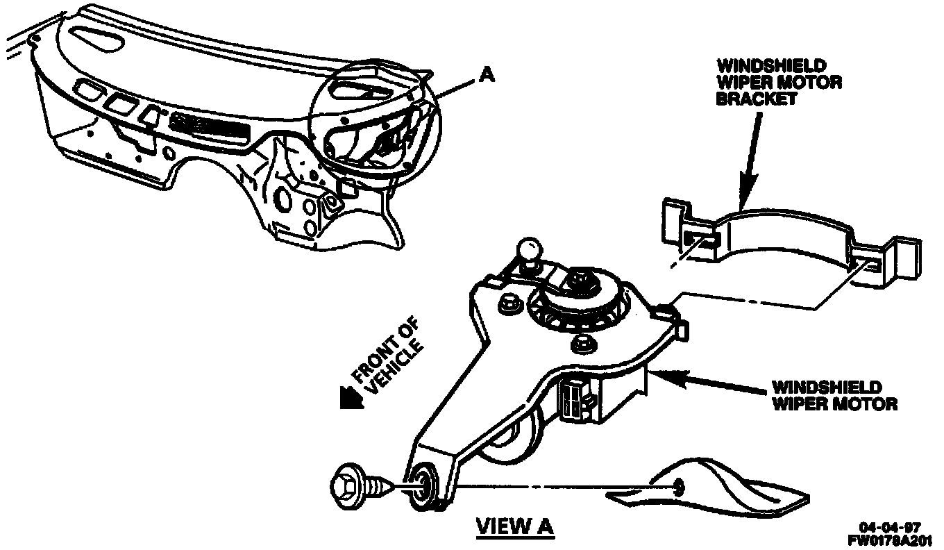 Windshield Wiper Motor, Inside Of Left Side Cowl: