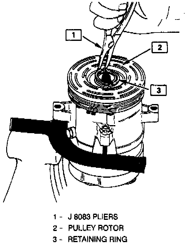 9. Install rotor and bearing assembly retainer ring, using snap ring pliers J 6083.