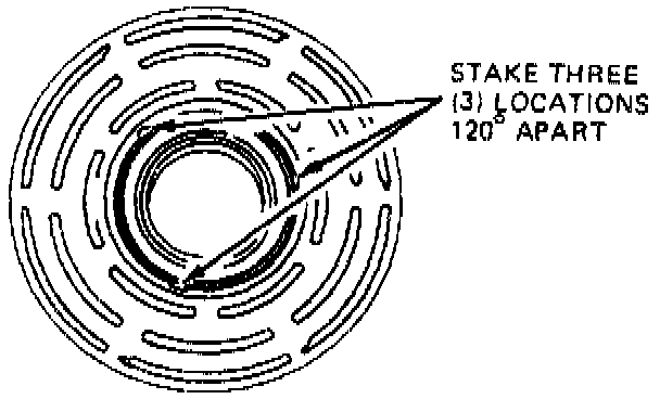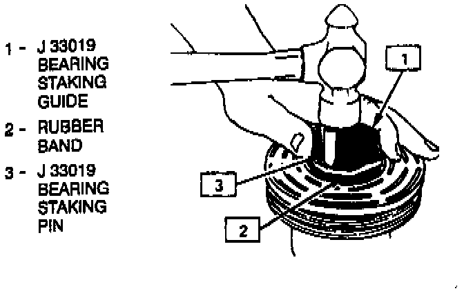 The stake metal should not contact the outer face of the bearing to prevent the possibility of distorting the outer race. Stake three (3) places 120° apart.