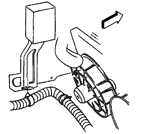 4. Remove the positive cable rosebud clip from the engine lift bracket.