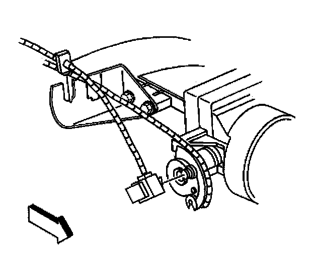 5. Pull the engine end of the cruise control cable until the cable is taut.