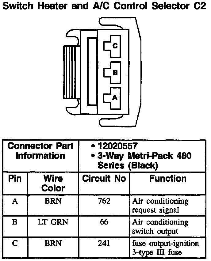 Switch Heater And A/C Control Selector C2: