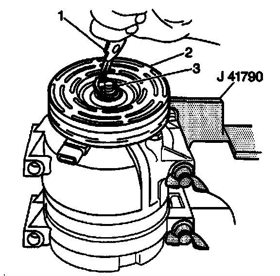 1. Install the compressor assembly onto the J 41790 (Figure 7).