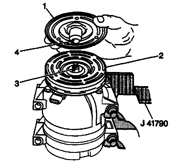 3. Align the shaft key with the shalt keyway and place the clutch plate and the hub assembly onto the compressor shaft.