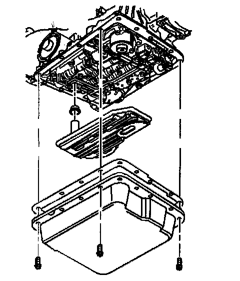 11. Clean the transmission case and the oil pan gasket surfaces with solvent, and air dry. You must remove all traces of the old gasket material.