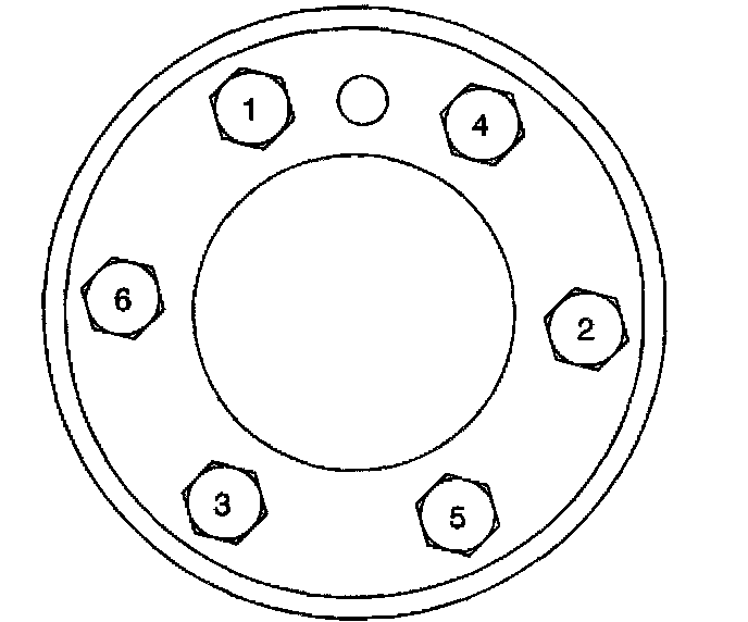 1. Tighten the engine flywheel bolts first pass in sequence to 20 Nm (15 lb ft).