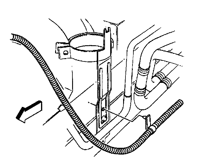 3. Install the battery cable to the rosebud clip at the accumulator bracket.