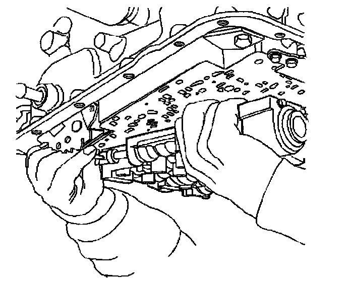 14. Carefully begin to lower the control valve body down from the transmission case, disconnect the manual valve link, then remove the control valve body from the transmission case.