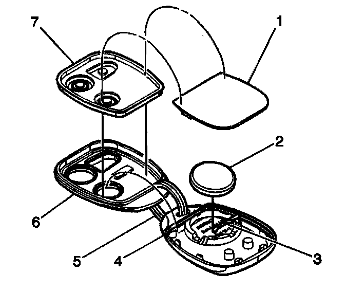 1. Insert a dime between the 2 halves of the transmitter case at the slot provided near the key ring (5) hole.
