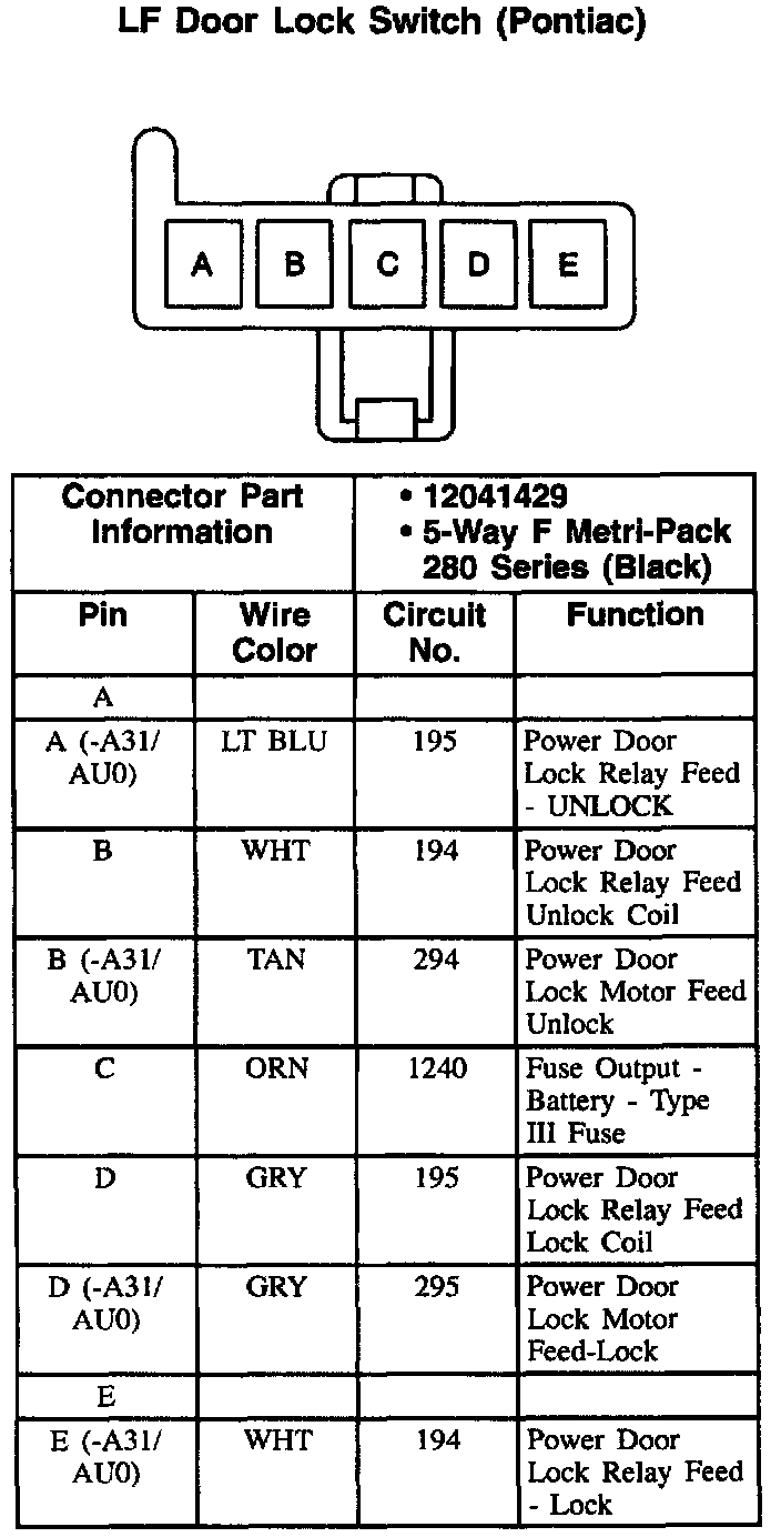 Left Front Door Lock Switch