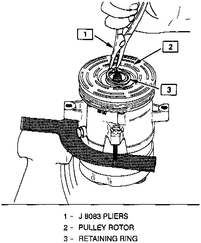 Removing Pulley Rotor & Bearing Assembly Retaining Ring: