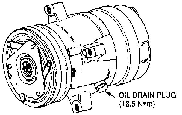 All replacement compressors will be shipped with 270 ml (9 oz.) of PAG Lubricant in the crankcase. This lubricant must be drained and retained. Then replace the lubricant in the same amount as previously recorded from the old compressor. NOTE: Replace only with GM approved PAG Lubricant.