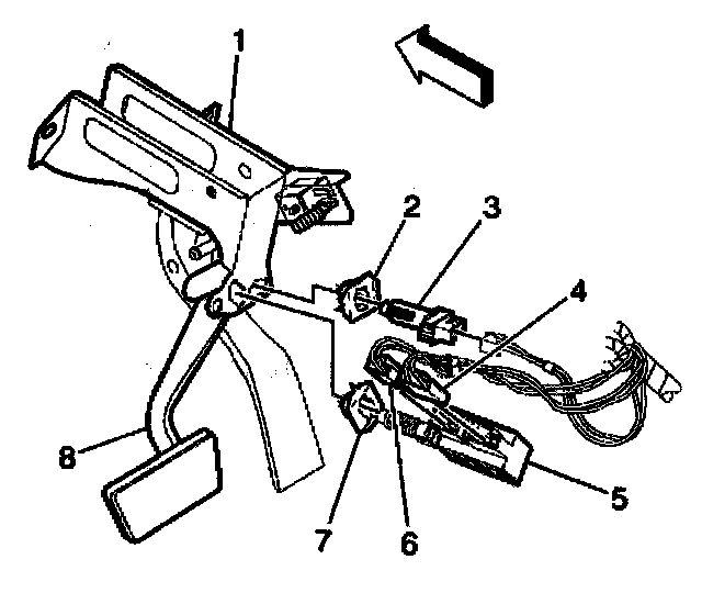 3. Disconnect the brake switch retainer (2), grasping and turning 90 degrees counter clockwise and pulling towards the rear of the vehicle.