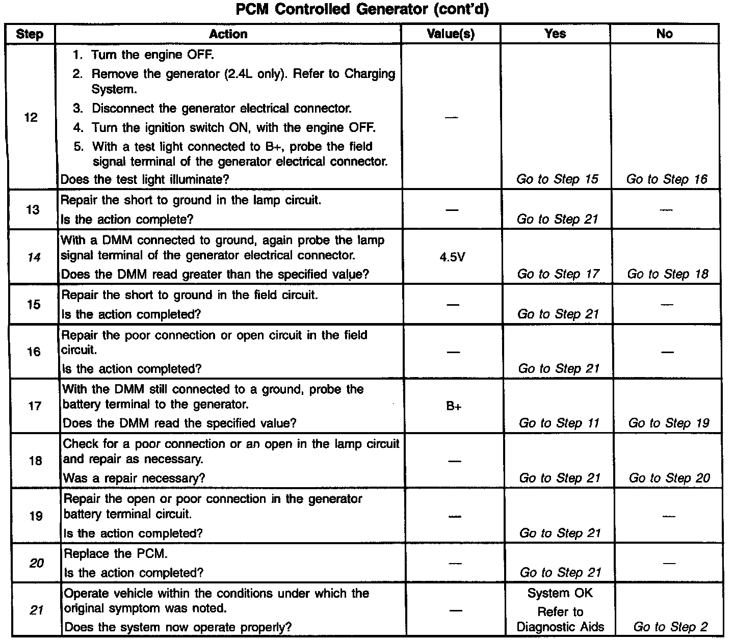 14. The PCM supplies a voltage to the generator. If voltage is available to the generator at this terminal, then the PCM and wiring are OK.