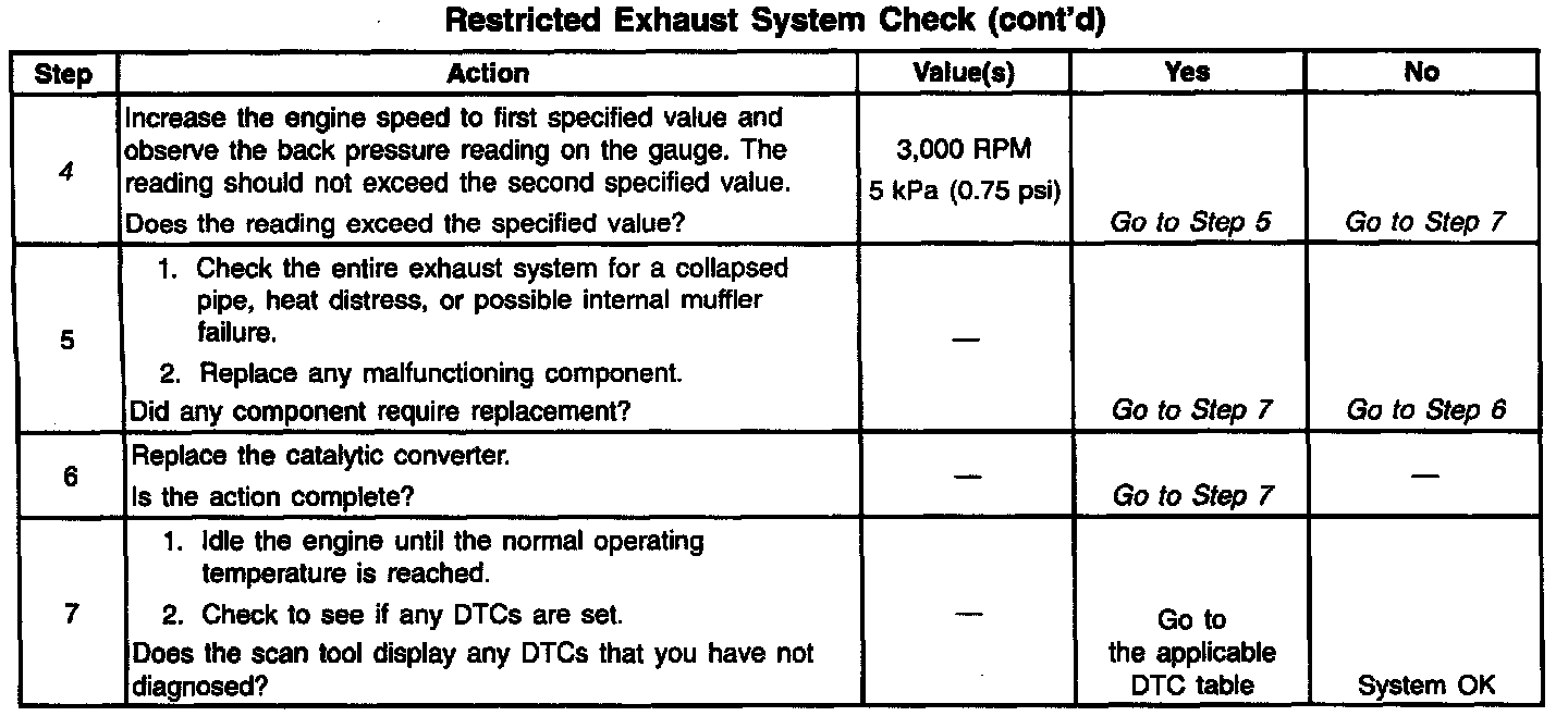 4. If no high back pressure is found at idle, increasing the engine speed to 3000 RPM may find a slight restriction. The added engine speed increases the exhaust flow which will help determine if there is a slight restriction.