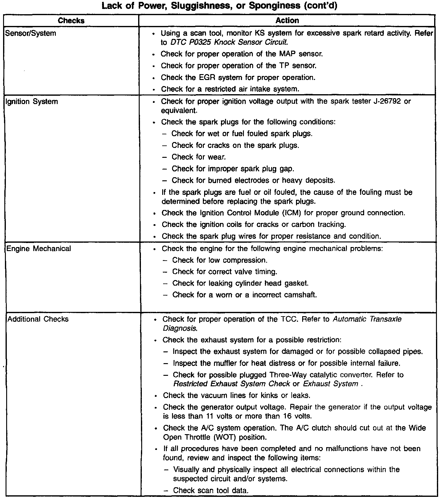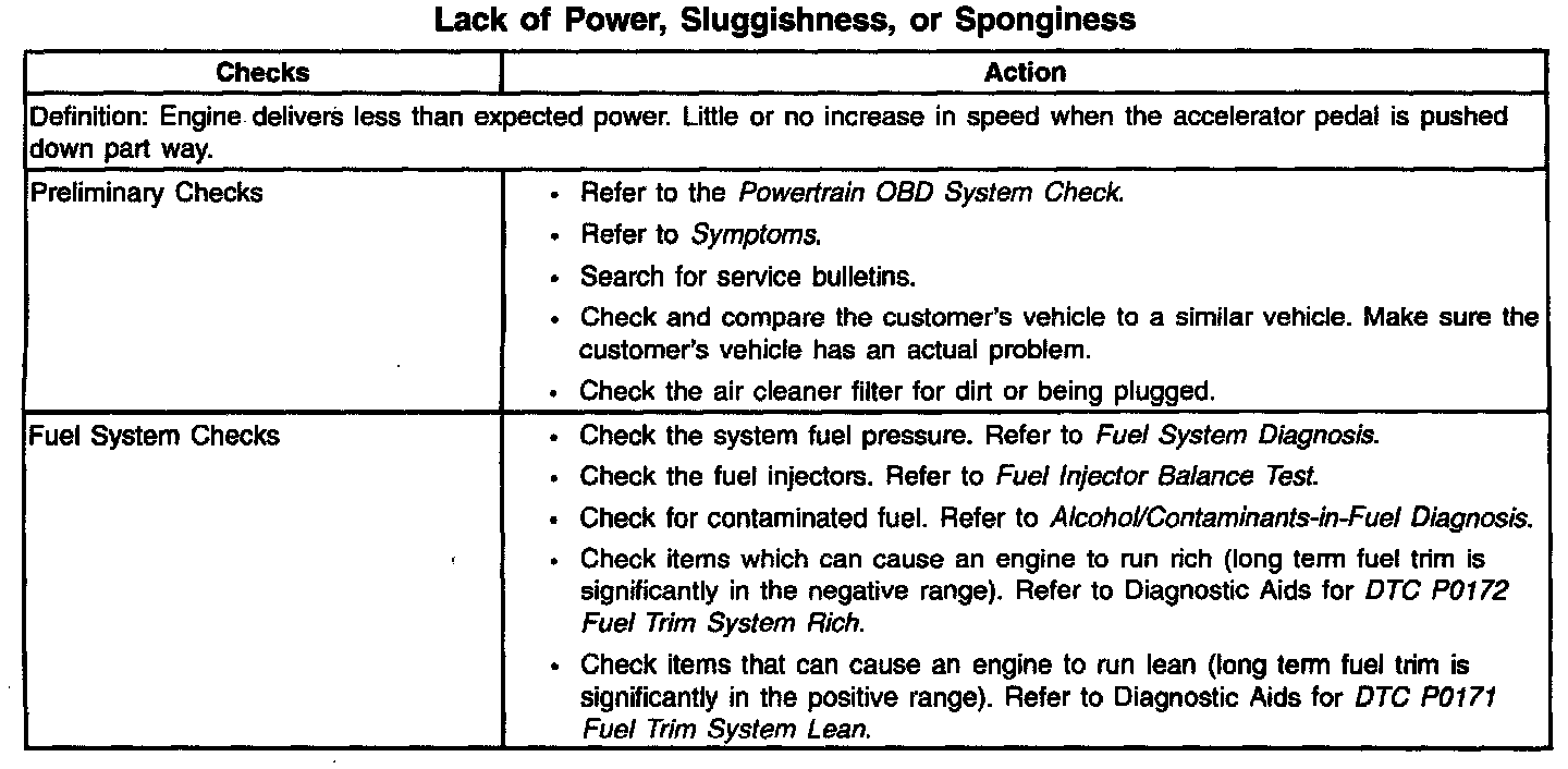 Lack of Power/Sluggish/Spongy/Stumble