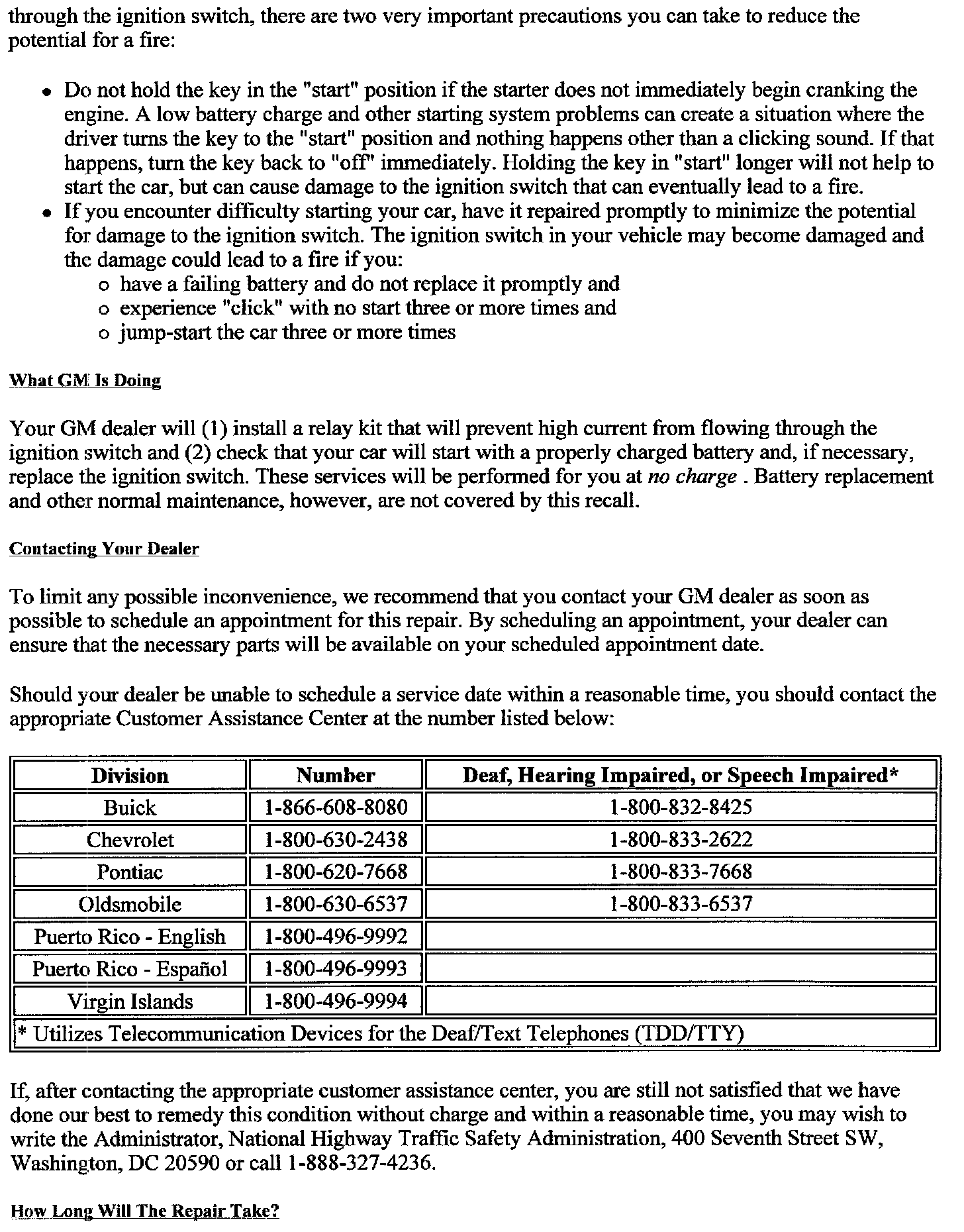 Recall - Ignition Circuit Defect