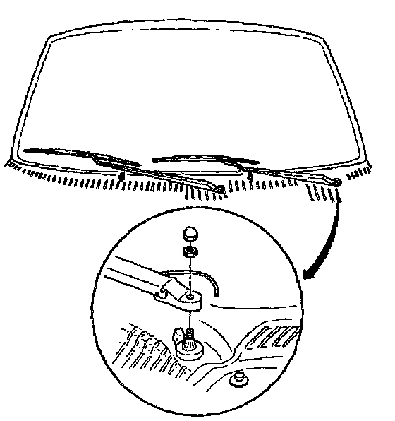 2. Install the nut onto the wiper transmission drive shaft and the wiper arm.