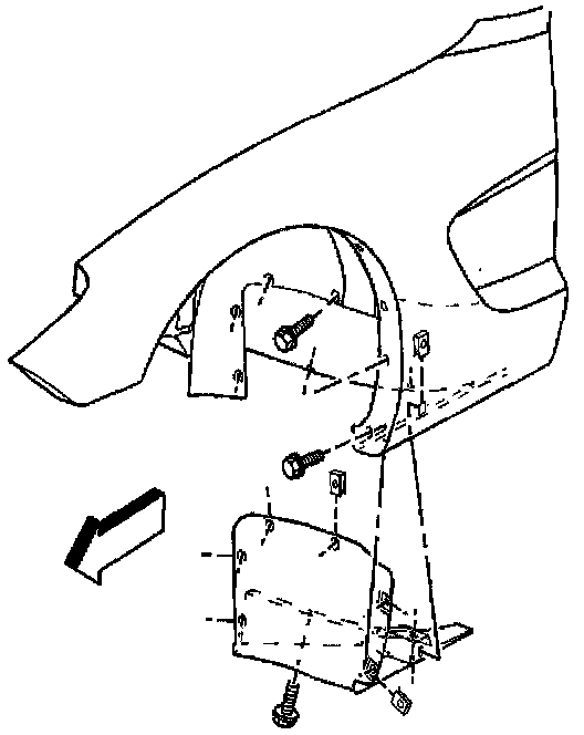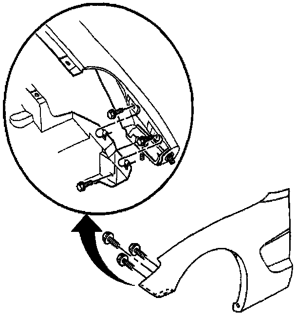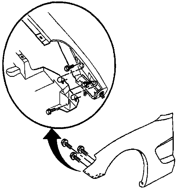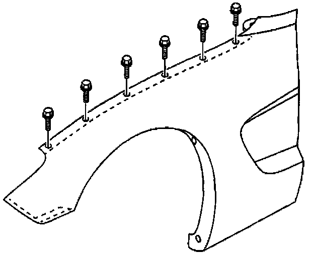 3. Install the screws attaching the fender to the wheelhouse upper front flange.