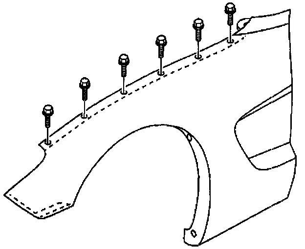 2. Starting at the rearmost hole, install the screws attaching the fender to the wheelhouse upper flange.