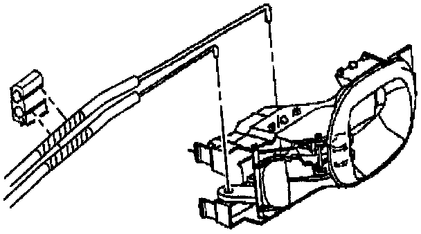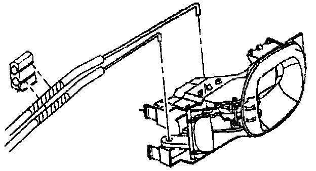 7. Disconnect the outside handle opening rod from the door lock by opening the non reusable clip using a coolant hose removal tool or by cutting the base of the clip off with a pair of side cutters and unscrewing the non reusable clip from the rod.