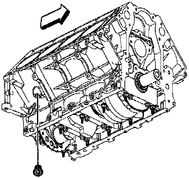 10. Remove the engine block front oil gallery plug.