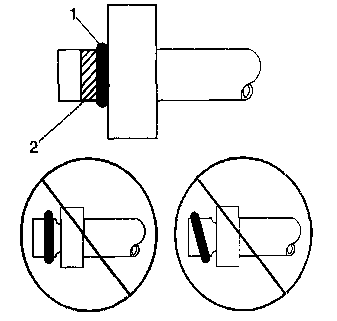 9. Lightly coat the new O-ring seal (1) with mineral base 525 viscosity refrigerant oil.
