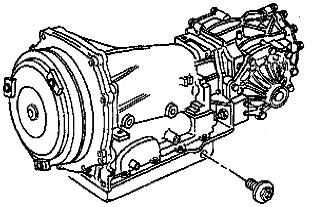 8. With the engine still running at idle, loosen the check/fill plug on the LH side of the transmission oil pan.