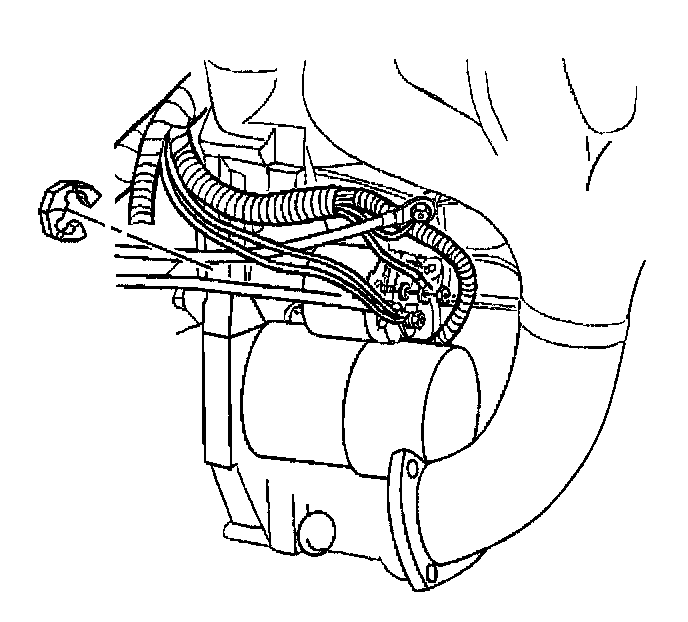 12. Disconnect the positive battery cable and nut from the starter motor.