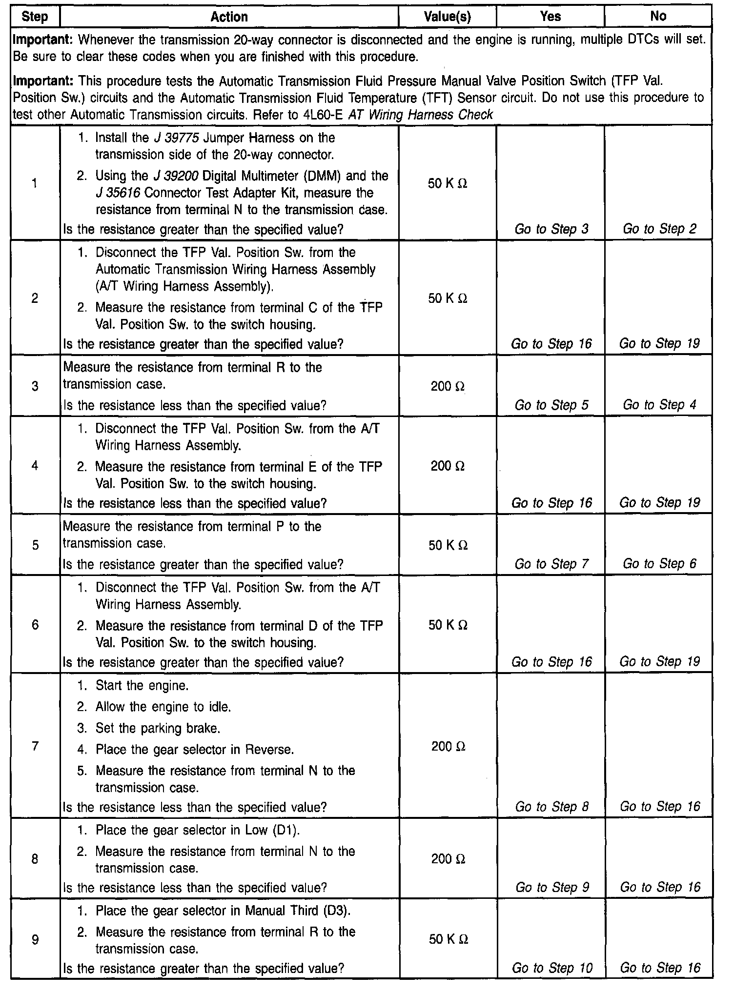 TFP Manual Valve Position Switch Resistance Check - 3 Of 3: