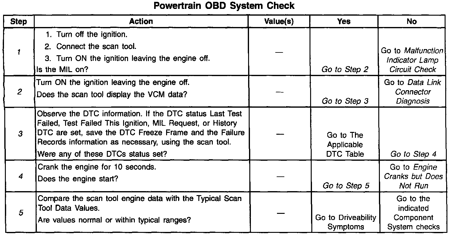 Understanding the table properly reduces the diagnostic time. Proper use of the OBD helps prevent the unnecessary replacement of good parts.