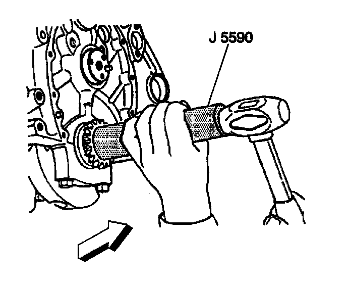 3. Use the J 5590 and a hammer in order to install the crankshaft sprocket.