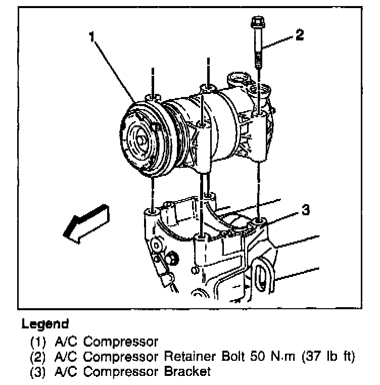 ^ The bolt at the compressor to 50 N.m (37 lb ft).