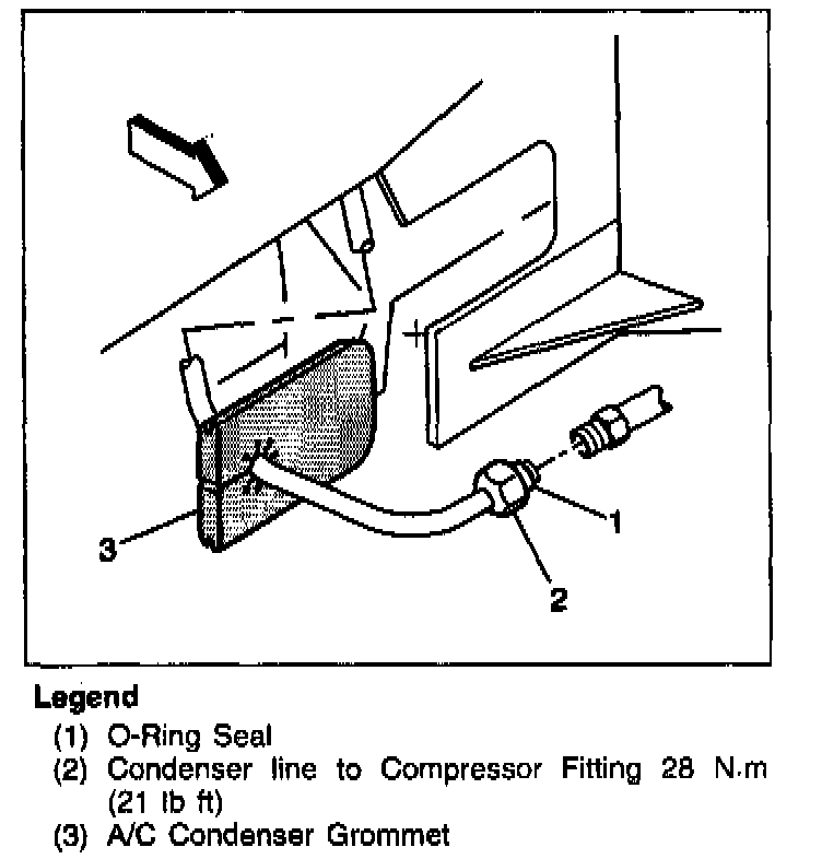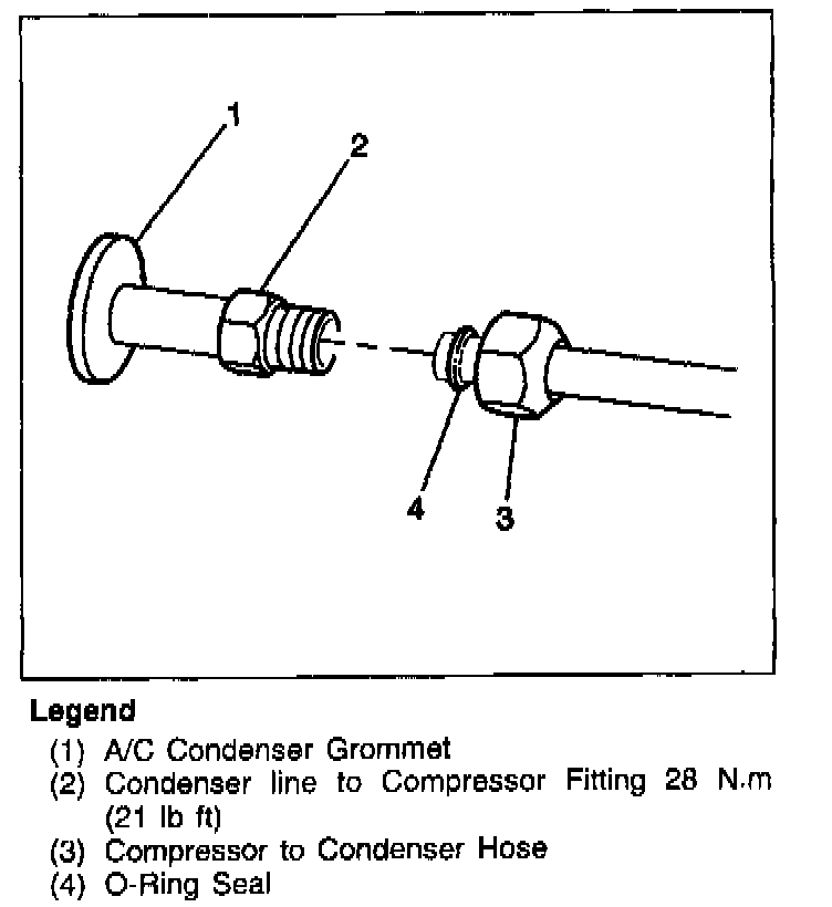 ^ The compressor/condenser hose to the condenser to 28 N.m (21 lb ft).