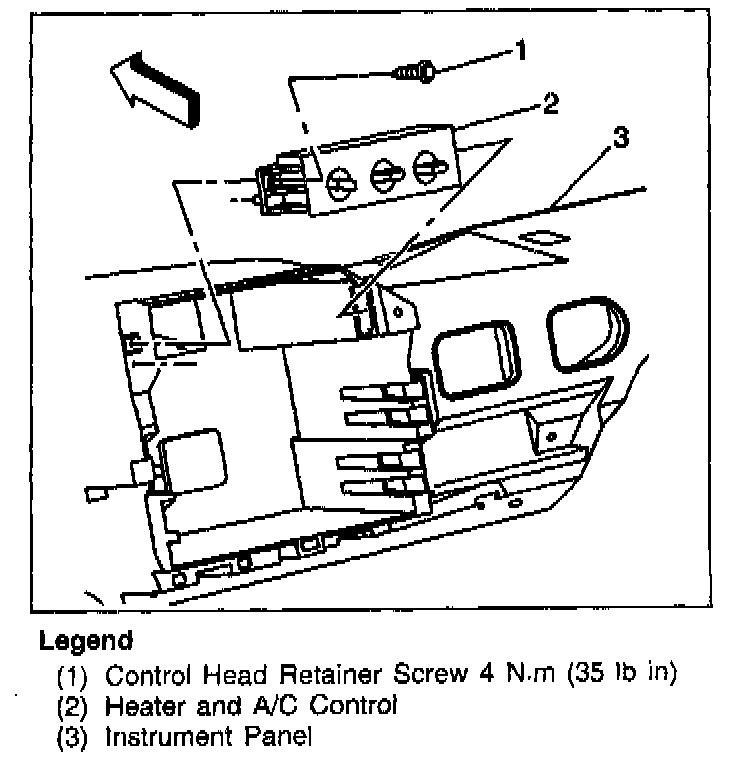 ^ The heater and A/C control head retaining screw to 4 N.m (35 lb in).