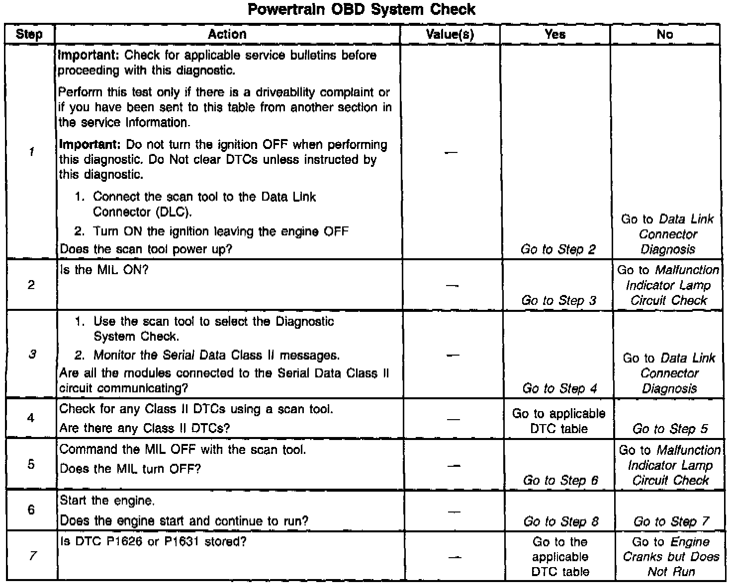 Understanding the table properly reduces the diagnostic time. Proper use of the OBD helps prevent the unnecessary replacement of good parts.