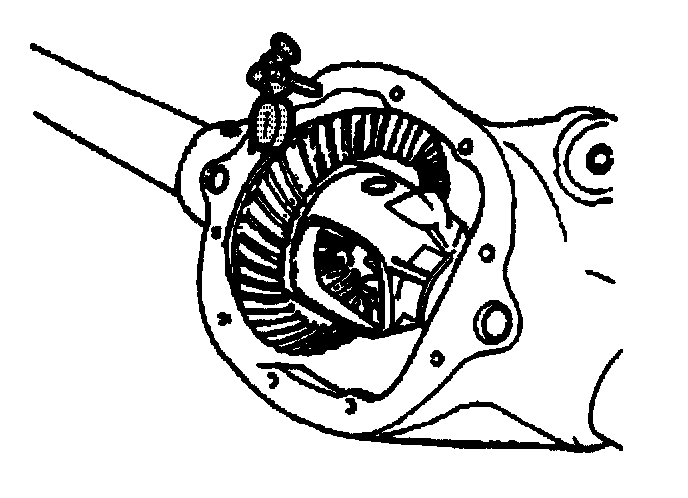 2. Place the indicator tip of the J39704 on the heel end (1) of the ring gear tooth.